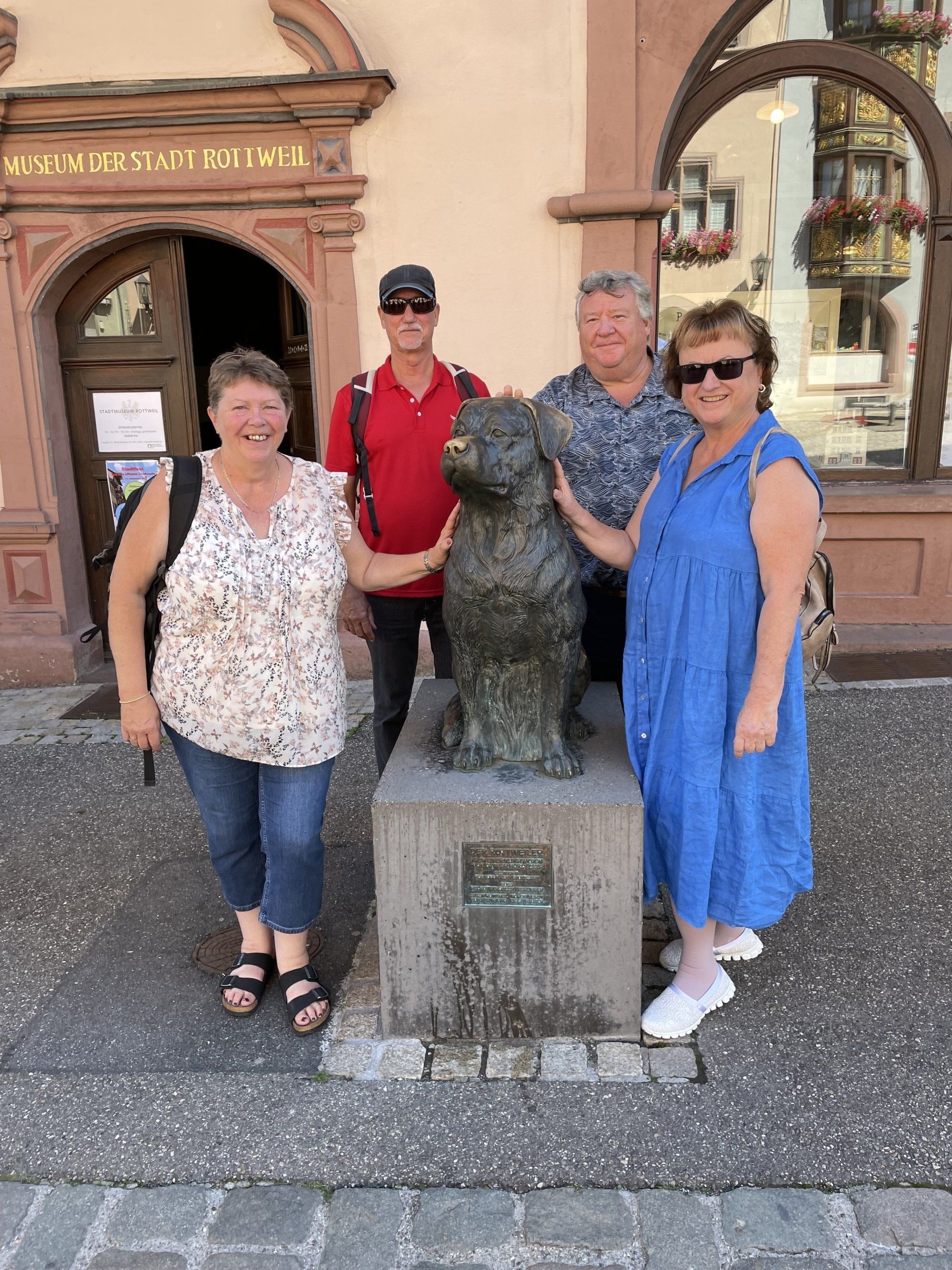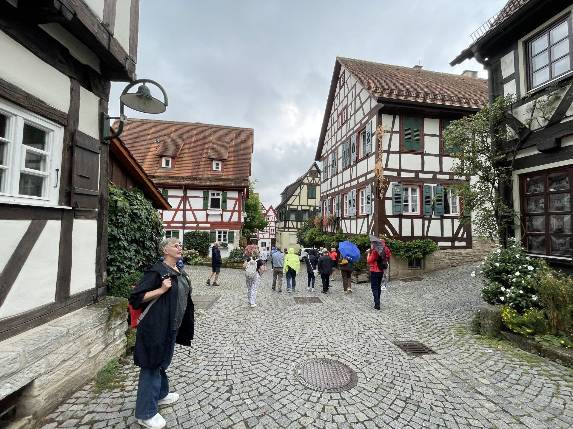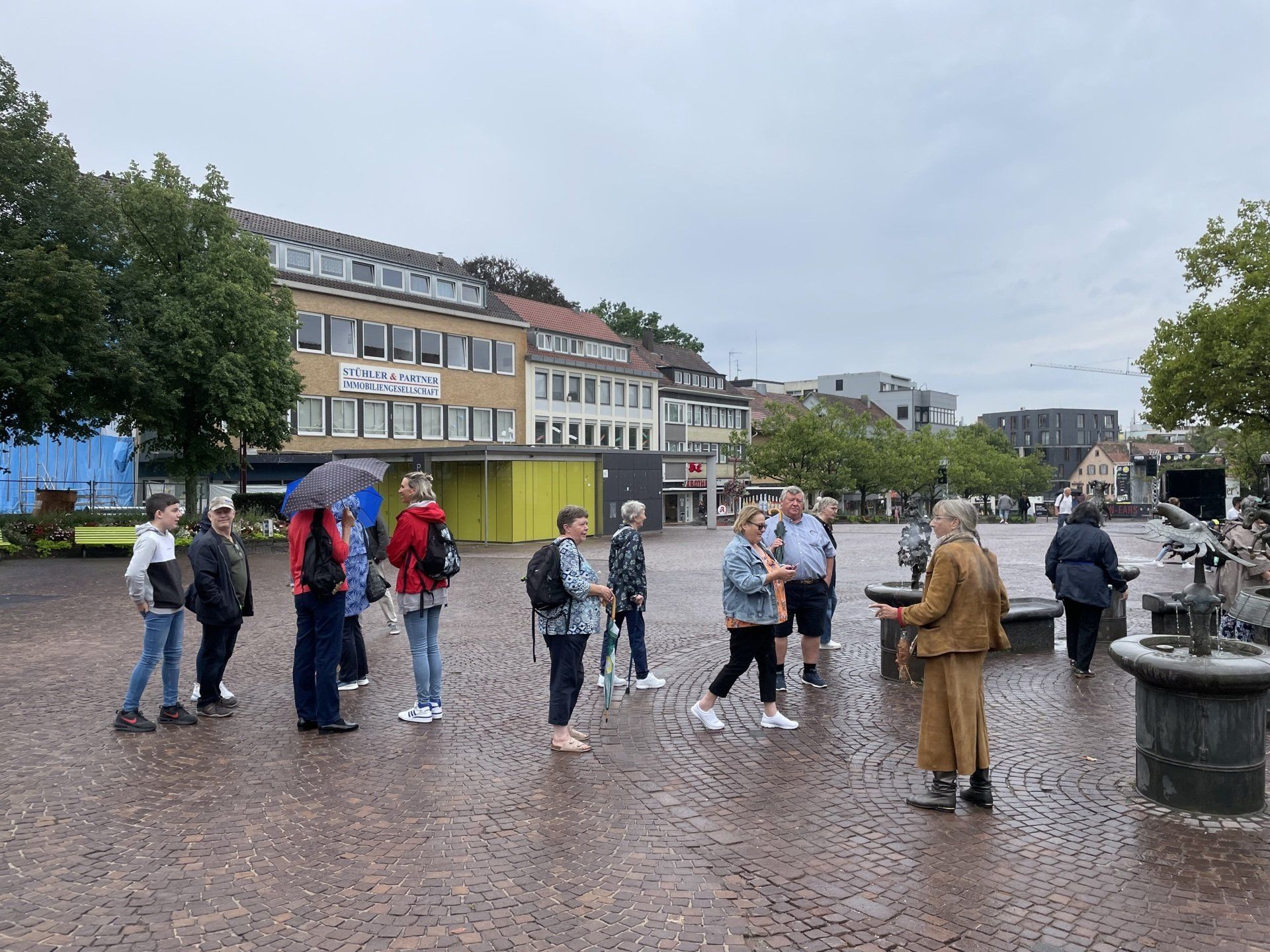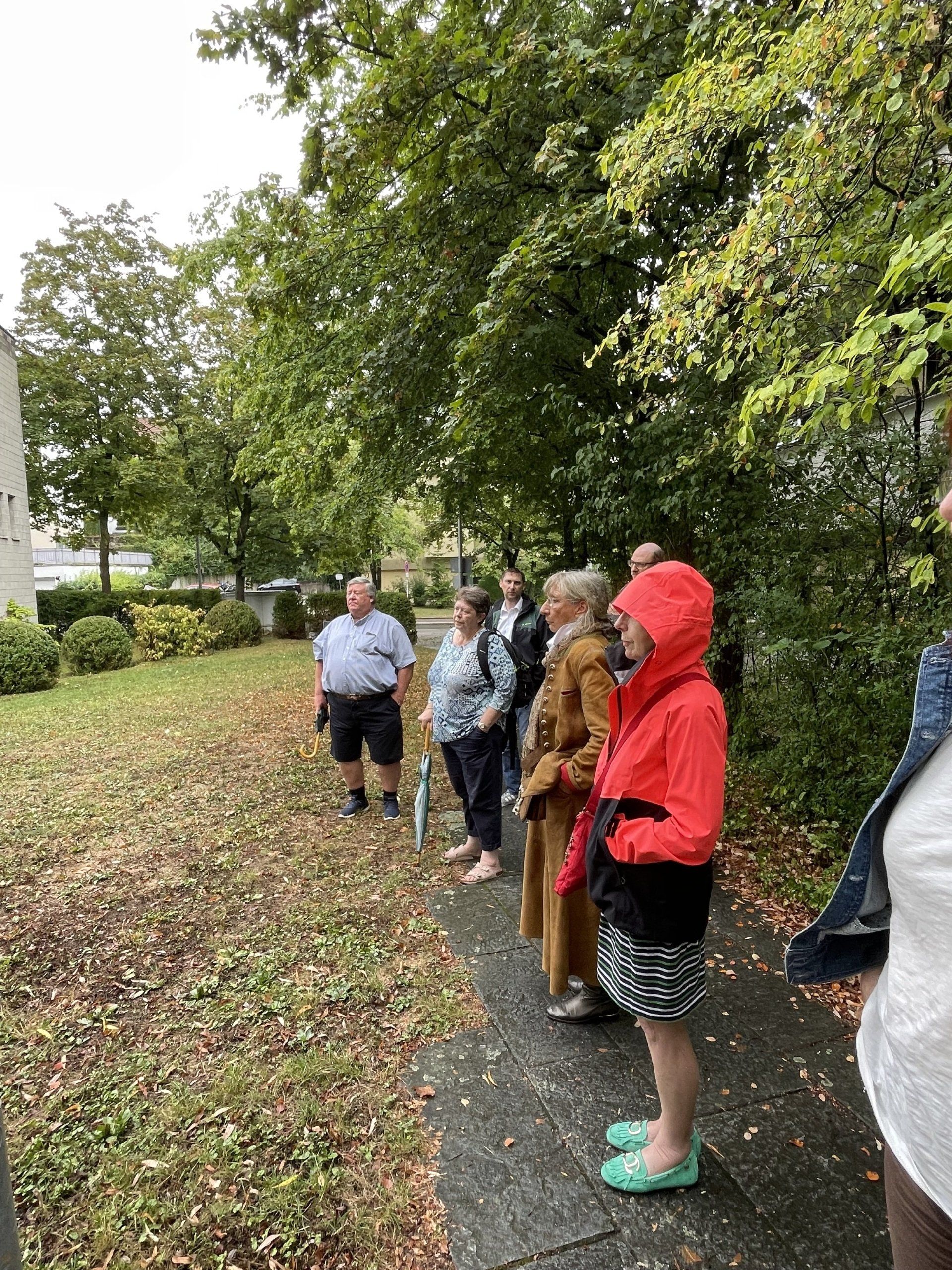 On the way to Schorndorf by public transport. That was an experience in itself - but after several changes, we finally arrived in Schorndorf. After the journey had lasted longer, we strolled around the market for a bit and then went to lunch in the restaurant in the Barbara-Künkelin-Halle. Sven Plug (formerly in the Filharmonie) is now responsible there for hall occupancy and other tasks. After the delicious meal, he spontaneously offered the group a tour of the hall. Then it was on to an interesting city tour through the streets of Schorndorf, ending at the birthplace of Gottlieb Daimler. Due to the very warm temperatures, the groups then spread out in cafes for a delicious drink or an ice cream. The journey home was then individual.