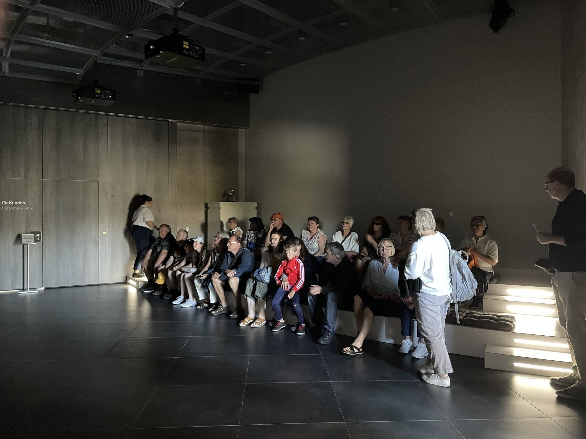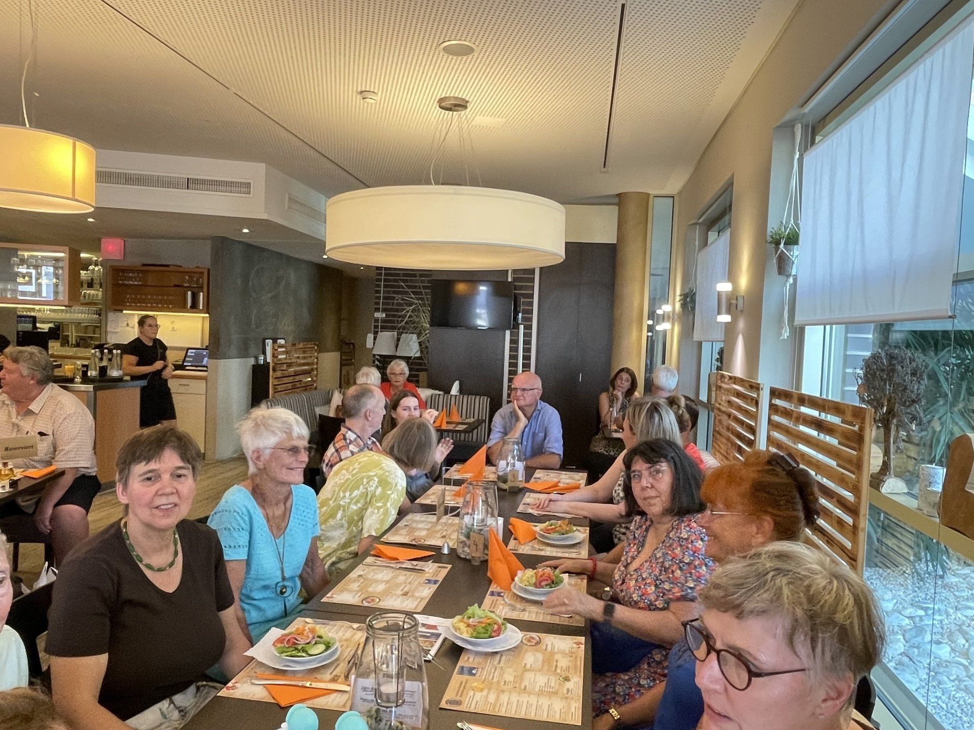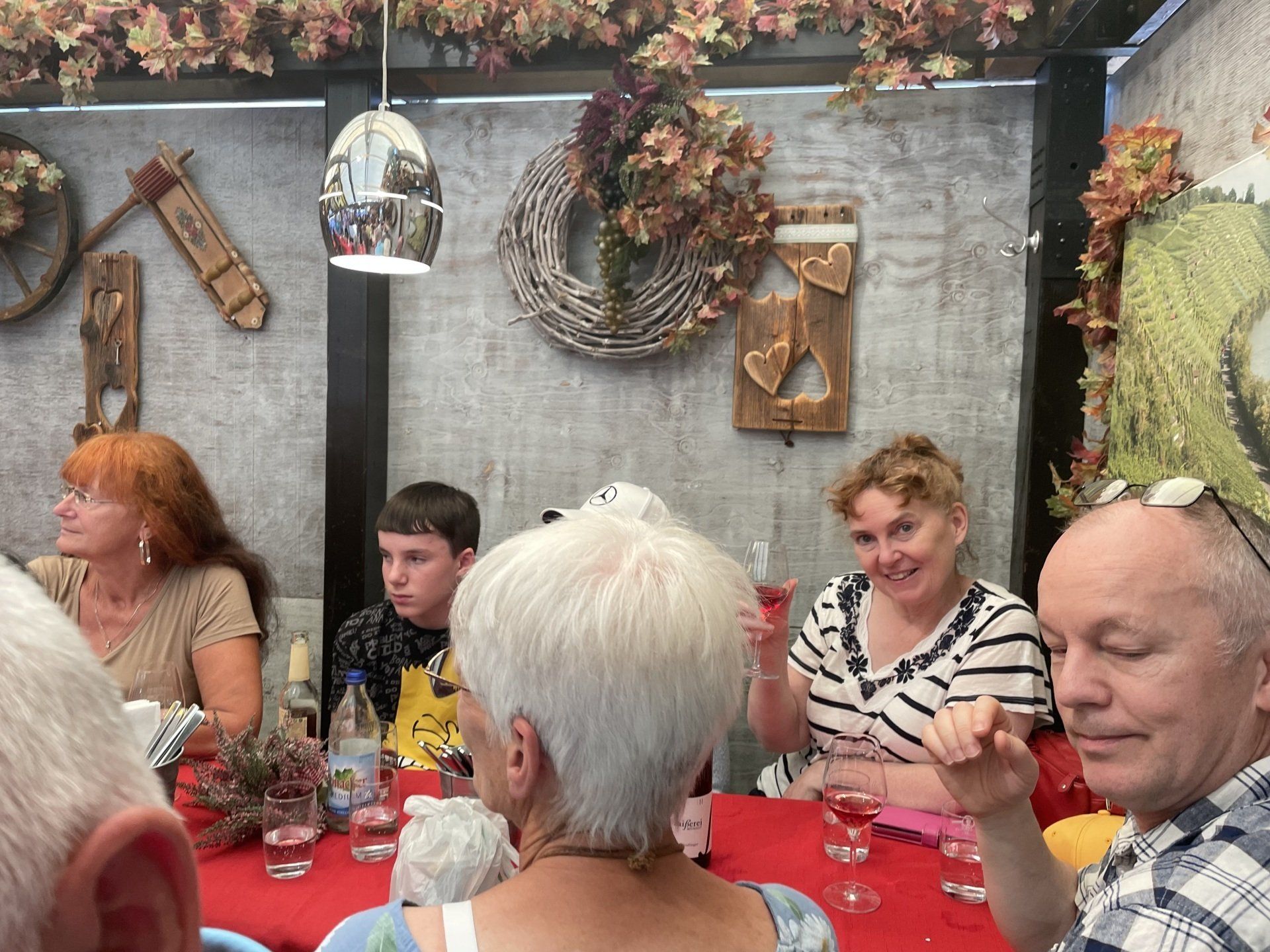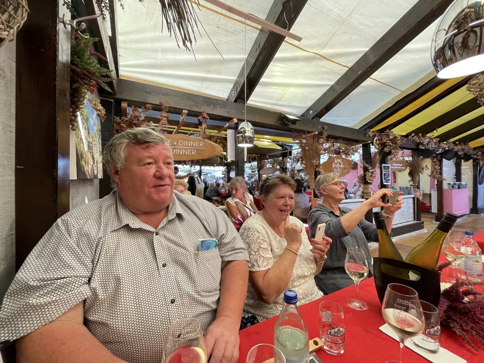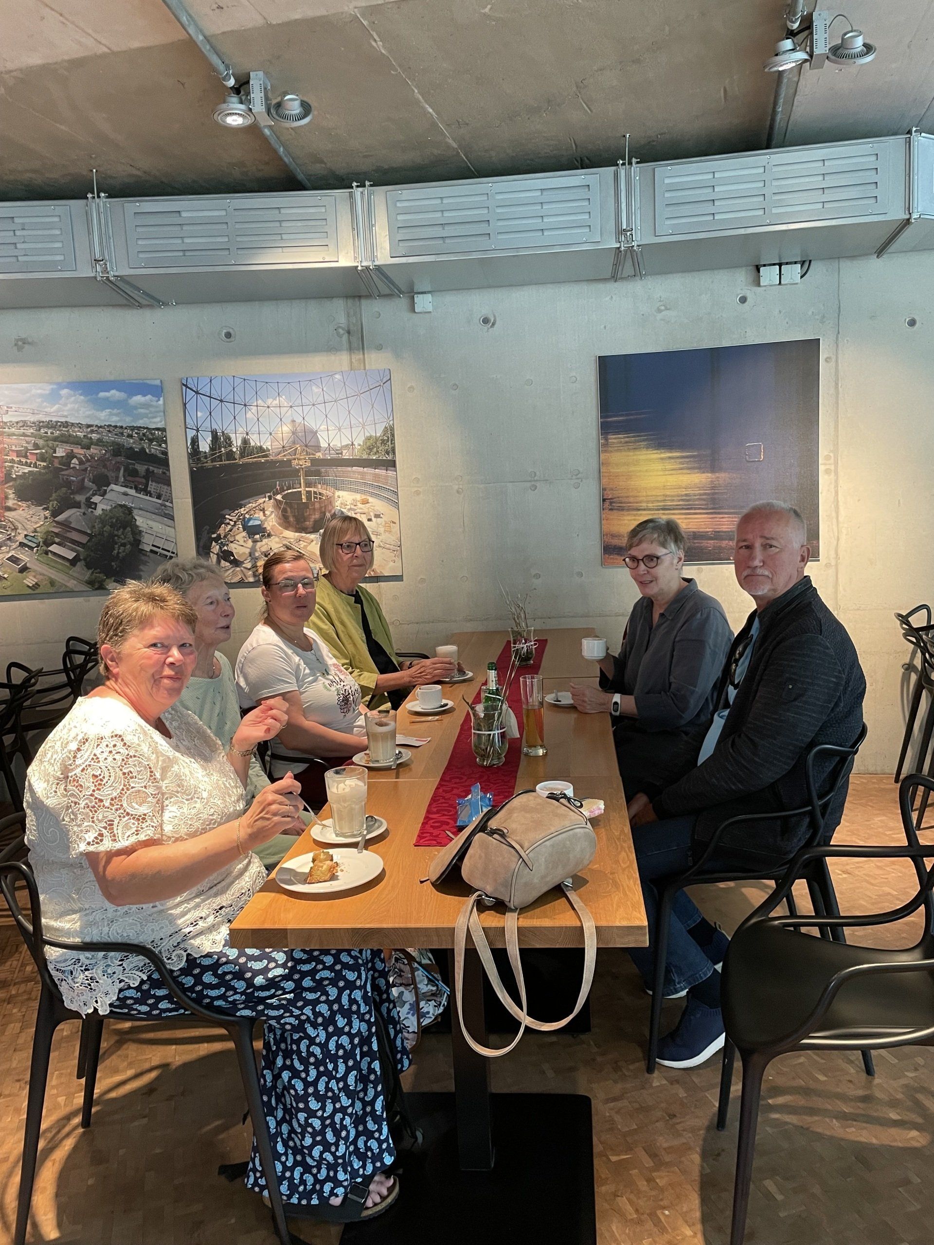 Today we took the bus again. First we went to the cemetery in Plattenhardt to commemorate our deceased chairman Robert Hertler. Then we drove to the Gasometer in Pforzheim. There the coral reef of the Great Barrier Reef in Australia can be admired in a fascinating 360-degree panorama. By bus back to Stuttgart and for lunch. Afterwards free time for a little walk through the city. At 5 p.m. everyone met again at the wine village. Tables were reserved at the Zaisserei. The mood was great. Then the bus drove us back to Filderstadt - so we didn't have to face a new adventure with public transport.