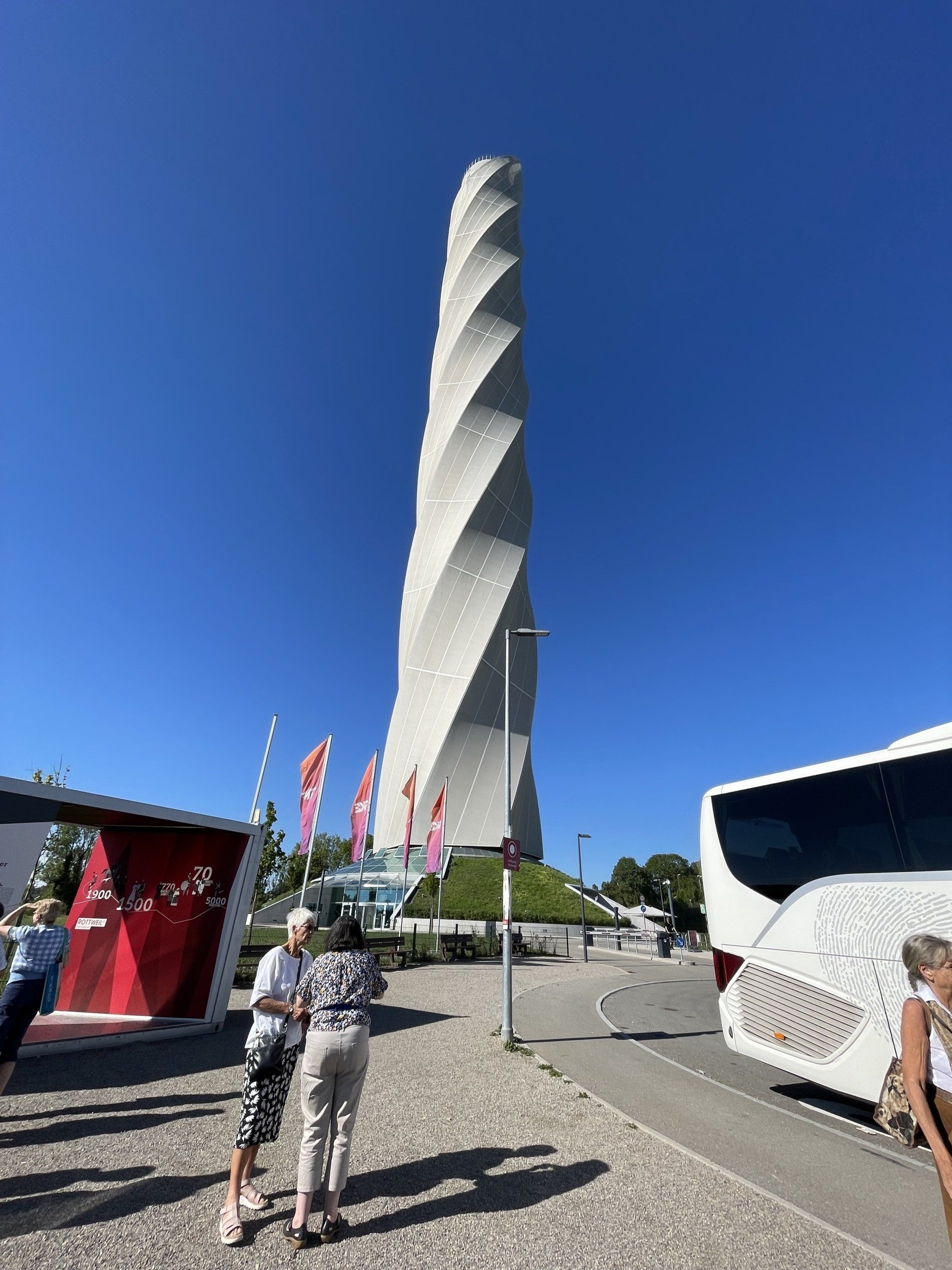 Drive by bus to the TK elevator test tower in Rottweil. In 30 seconds with the lift to the 232 m high platform. The weather was great – the view was almost endless. After a delicious lunch in a hotel, we went on a city tour in Rottweil - the oldest city in Baden-Württemberg. There was also free time to eat ice cream. The drive back to Filderstadt took us through the beautiful countryside away from the mtorway.